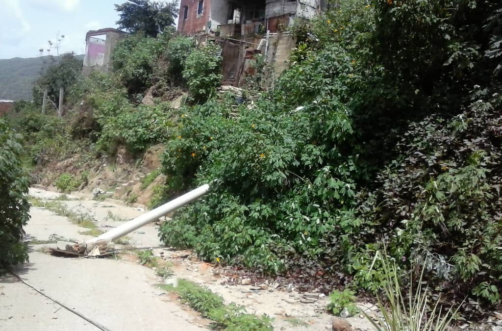 Primero estuvimos en la zona de arriba, en el sector Terepaima, dónde conocimos a la señora Milagros Parra, quien vive allí hace años con sus hijos y ahora con sus nietos. Lo primero que denunció es que esta semana ha tenido cortes intermitentes de luz, a causa de un poste que está por caerse y es el que lleva el cableado eléctrico a la zona. Además pudimos observar más adelante, que otro poste está al borde del precipicio. Nos contaron además, que la vecina “Johana”, sin apellido y a quien no pudimos contactar, tuvo que mudarse a su casa pues la misma ahora estaba por caerse.