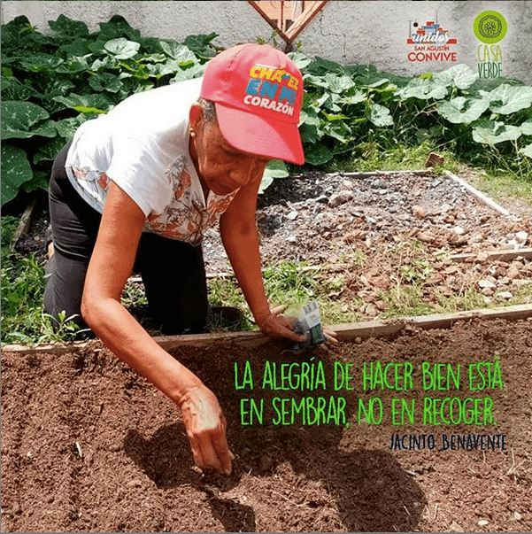 En nuestro huerto o en los terrenos de organizaciones hermanas compartimos prácticas agroecológicas: compostero, bancales de siembra, sustrato, semilleros, sistemas de riego alternativo, biocontroladores, etc.