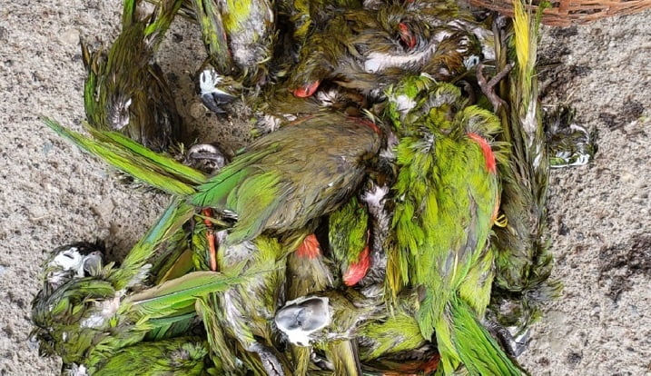 Imágenes reportadas por el medio The Guardian de Trinidad y Tobago permiten comprobar que al inicio de junio de 2020 cerca de 50 aves murieron ahogadas al ser arrojadas por la borda por la tripulación de un bote cuando estaba a punto de ser abordado por la guardia costera de la isla caribeña. Las especies de aves incluían amazonas alinaranjas, guacamayas nobles y caiques.