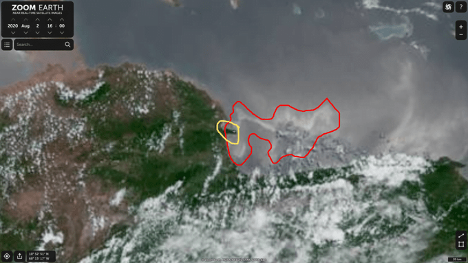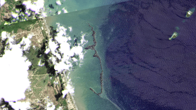 Este 3 de agosto el servicio de rastreo de buques TankerTrackers.com publicó en la red social Twitter una imagen satelital en la que se puede apreciar la mancha negra acercándose a la costa al sur del Parque Nacional Morrocoy, reconocido por sus playas bordeadas de palmeras y manglares. La imagen fue capturada por @planetlabs el 1 de agosto de 2020 y confirma el derrame de petróleo que golpea la costa al sur del Parque Nacional Morrocoy. Ubicación: 10.72 ° N, 68.29 ° W.