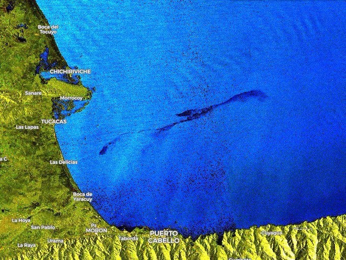 Por su parte, la Fundación Caribe Sur publicó también una imágen de radar del satélite Sentinel-1 de fecha 31 de julio, en la que se puede observar la magnitud de la mancha de petróleo. De acuerdo con los activistas, las corrientes marinas de este a oeste muy probablemente harán que el derrame llegue al sistema del Parque Nacional Morrocoy y la Reserva Forestal de Cuare.