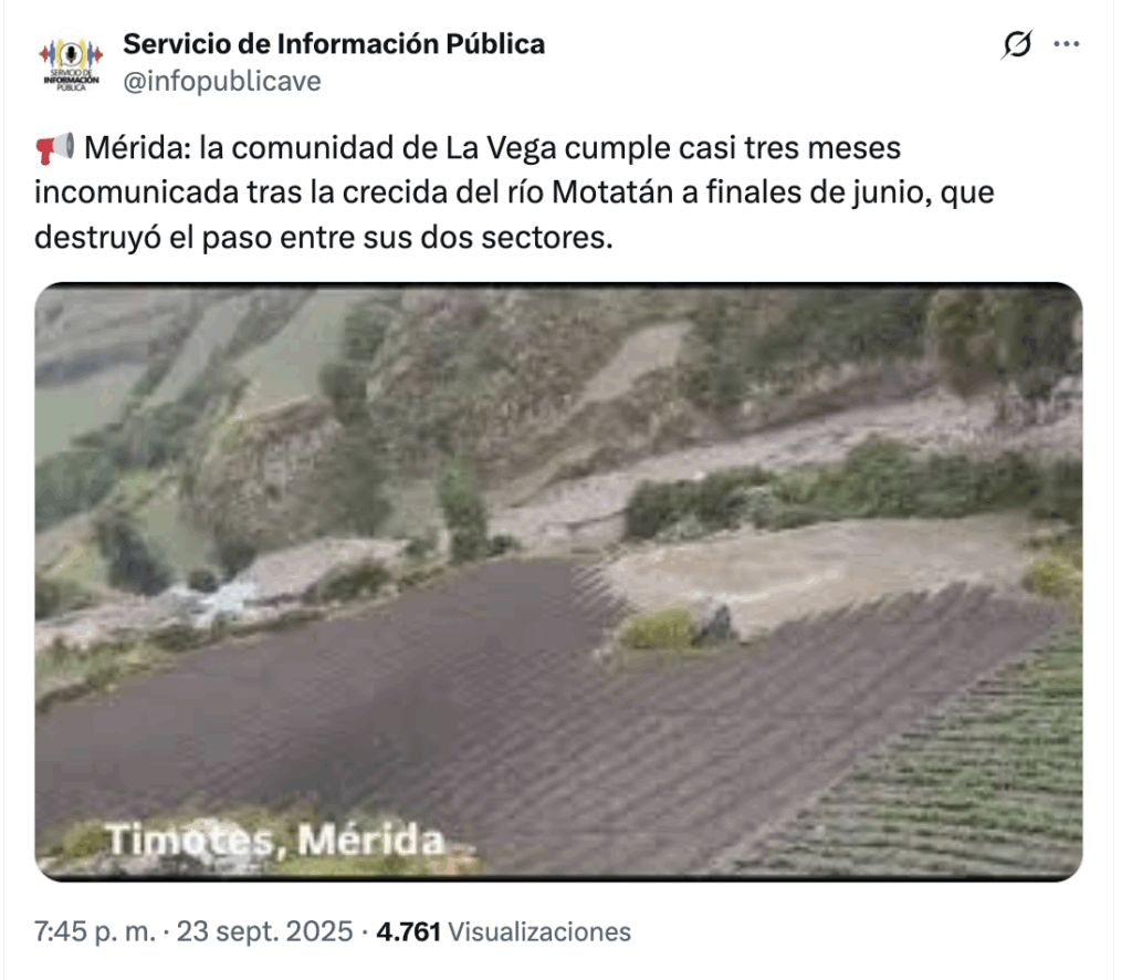Las precipitaciones intensas también pueden ocasionar daños en carreteras y puentes, especialmente en áreas rurales con infraestructura precaria. Durante el 2025, la temporada de lluvias ya ha provocado la afectación de vías en entidades como Apure, Barinas y Mérida, según reportes.