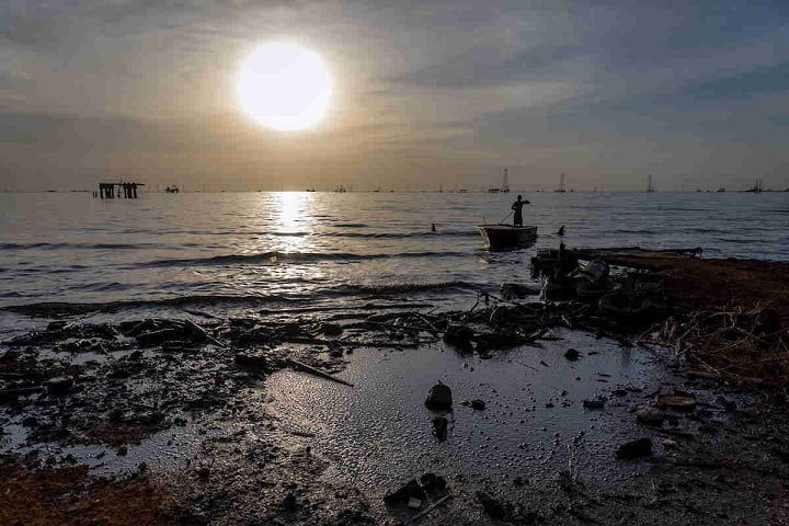 en aguas con petróleo en el Lago de Maracaibo.