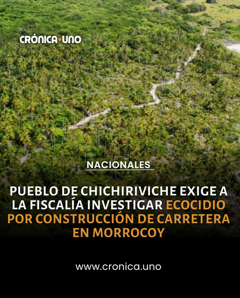 https://svecologia.org/comunicados/adhesion-al-comunicado-proyecto-ampliacion-pista-gran-roque-parque-nacional-archipielago-los-roques ↩︎ - López, Ch, J. (9 de julio de 2023). Pueblo de Chichiriviche exige a la Fiscalía investigar ecocidio por construcción de carretera en Morrocoy. Crónica Uno. https://cronica.uno/pueblo-de-chichiriviche-exige-a-la-fiscalia-investigar-ecocidio-por-construccion-de-carretera-en-morrocoy/
