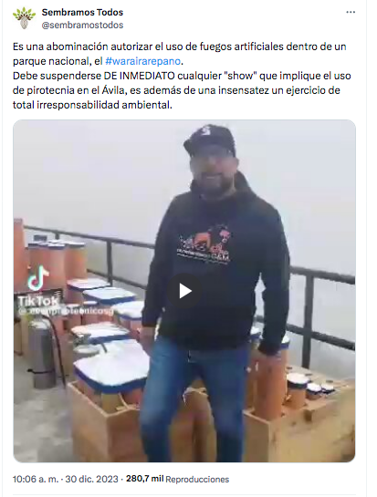 ↩︎ - El Nacional. (30 de diciembre de 2023). Fiscal suspende show de fuegos artificiales en El Ávila tras denuncias en las redes sociales. https://www.elnacional.com/venezuela/fiscal-suspende-show-de-fuegos-artificiales-en-el-avila/