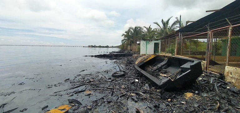 “En lo que va de años van más de 20 derrames de petróleo, gasoil o gasolina. Todos los años, como hasta el 2013, las instituciones hacían un saneamiento de objetos flotantes (recogían la basura), pero ni más. Hace poco nos metimos por aquí (entre unas gabarras) a sacar basura y las culebras nos iban a matar. El petróleo también acabó con unos 30 o 40 pescadores bolapie, que eran los que pescaban en la orilla a remo y se ponían el chinchorro en el pie. Enterró los cayuquitos y ahora están pasando hambre y muriendo en la miseria”, relató el vocero Luzardo, vocero principal de los Consejos Nacionales de Pescadores, Pescadoras y Acuicultores (Conppa) del Sur.