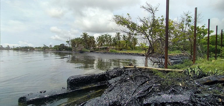 Los pescadores indican que según sus estimaciones más de 15 kilómetros lineales de petróleo, con un ancho de entre 20 y 30 metros y un grosor de 70 centímetros aproximadamente, cubren la costa, afectando especies claves para la economía local como carpetas, armadillos, bagres, lisa, lebranche, mero y el cangrejo orillero, así como el camarón, que desparecieron de la zona.