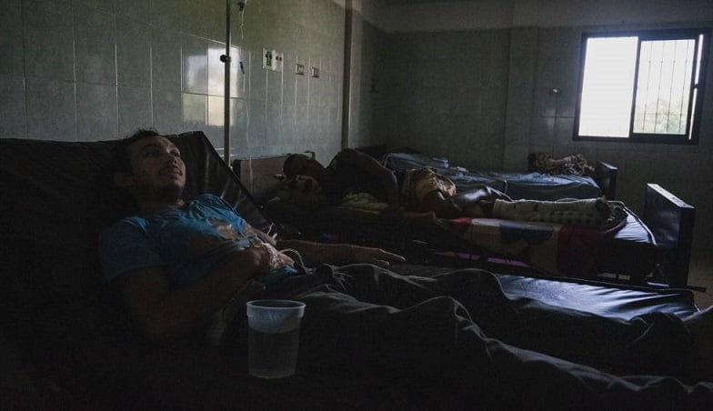 Acostado en la cama a su lado hay otro joven llamado Yordan Pentoja. Yordan no se cayó, se enfermó. El paciente de 27 años también está siendo atendido en el ambulatorio por un tipo grave de malaria. Dice que le han diagnosticado la enfermedad una docena de veces desde que comenzó a trabajar en la mina de Piedra Dura, hace más de un año y medio.