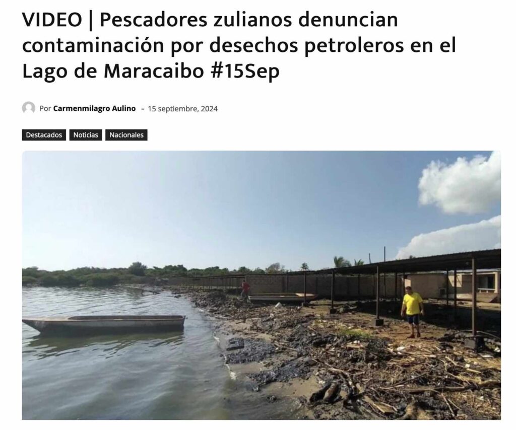 El 15 de septiembre continuaban las denuncias de las implicaciones de los derrames petroleras en la comunidad del Bajo, en el estado Zulia. Los pescadores del municipio San Francisco seguían reclamando como el crudo les impide realizar sus faenas de pesca, dañando incluso implementos de trabajo como redes y motores de sus barcos. Esta situación afecta al menos 500 familias de esa localidad.