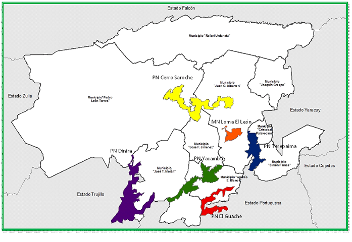 | Características de los parques | Parque Nacional Cerro Saroche | Monumento Natural Loma El León | Parque de Recreación Francisco Tamayo (del oeste) |